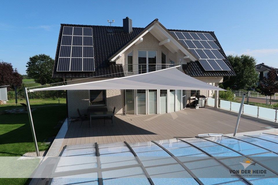 Exklusive Wohnanlage mit 3 aufrollbaren Sonnensegeln Typ elipse4sun