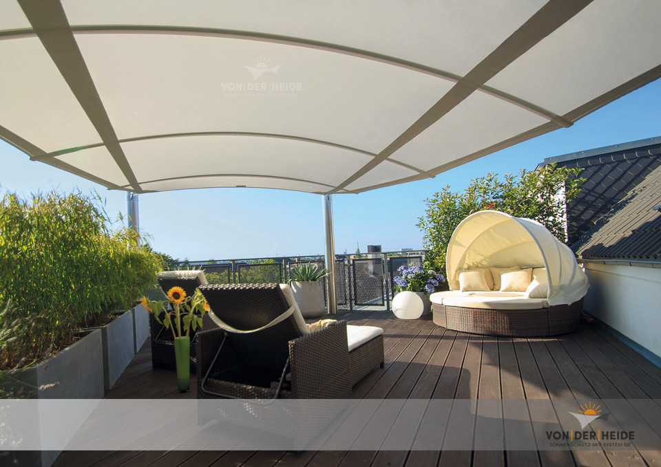 Trotz beeindruckender Größe sind Sonnensegel wie dieses Markisen-Segel leicht in der Optik