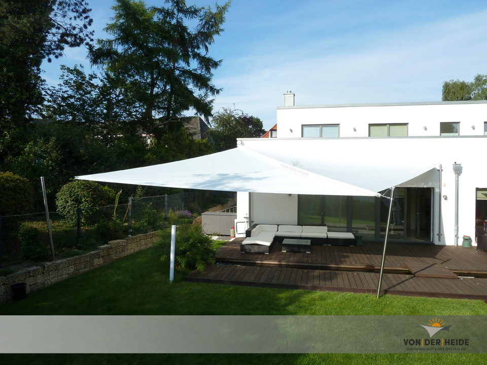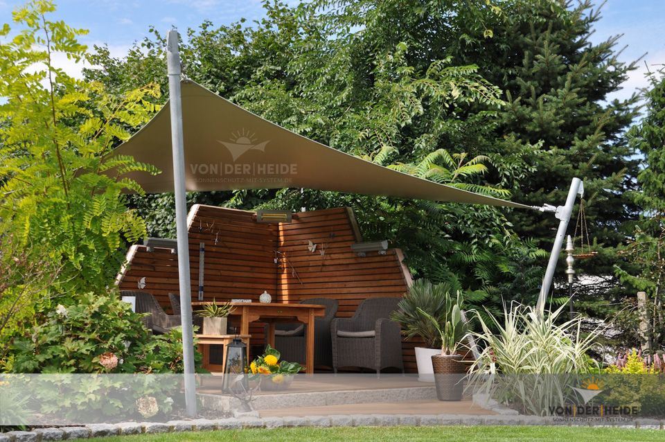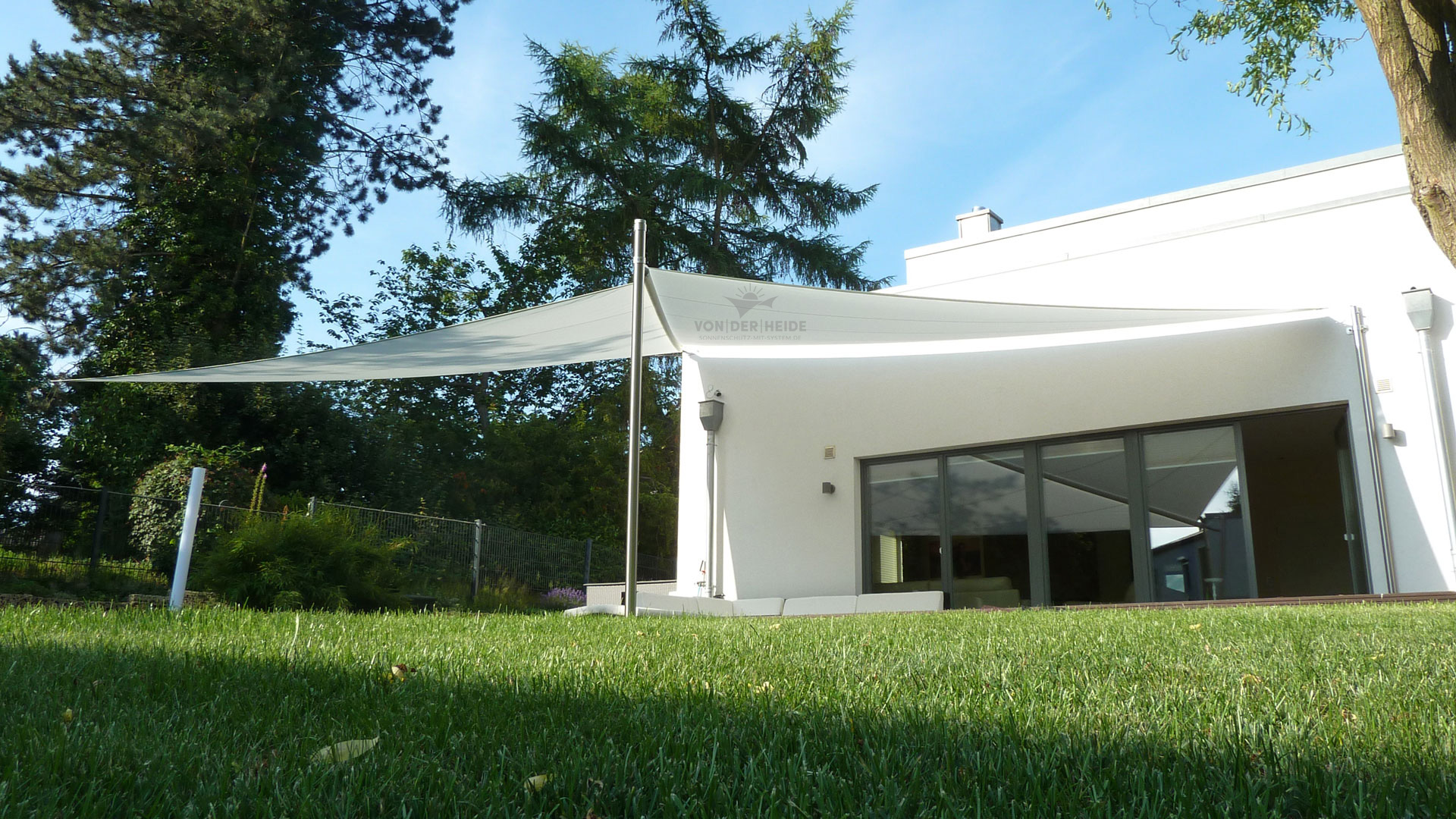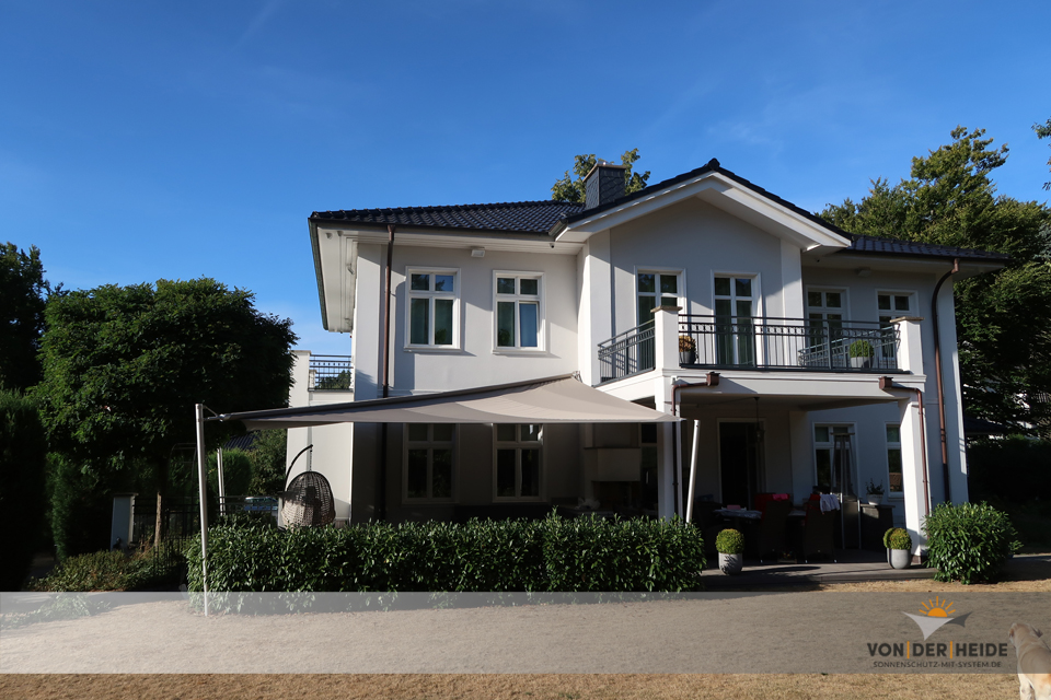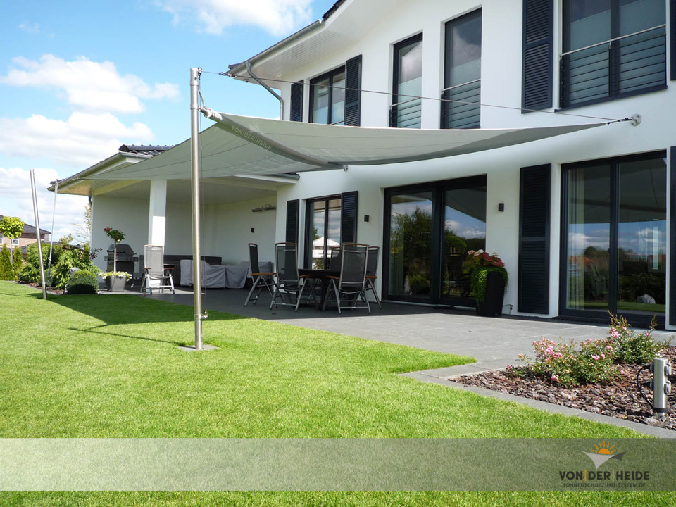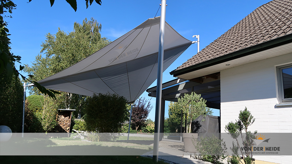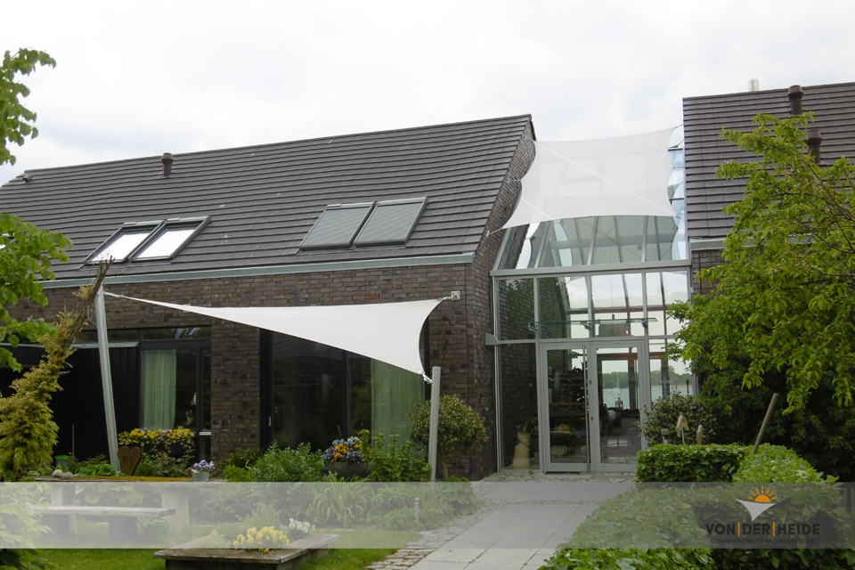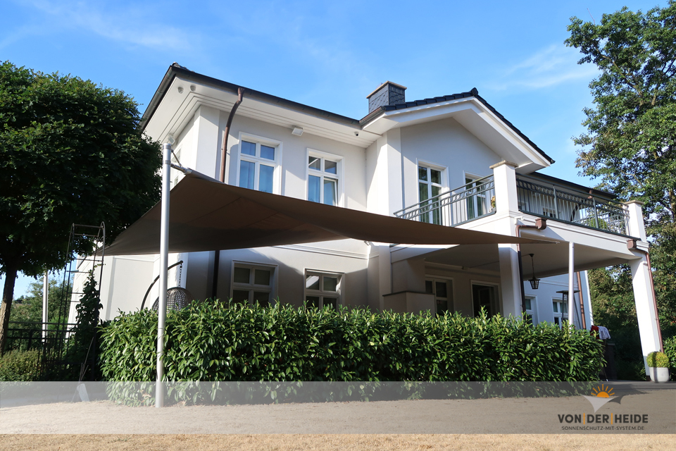 Mit richtig geplant und umgesetzten Sonnenschutzsystemen wie solchen Sonnensegeln genießen Sie Ihr Zuhause in Sonne und im Schatten