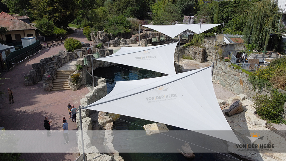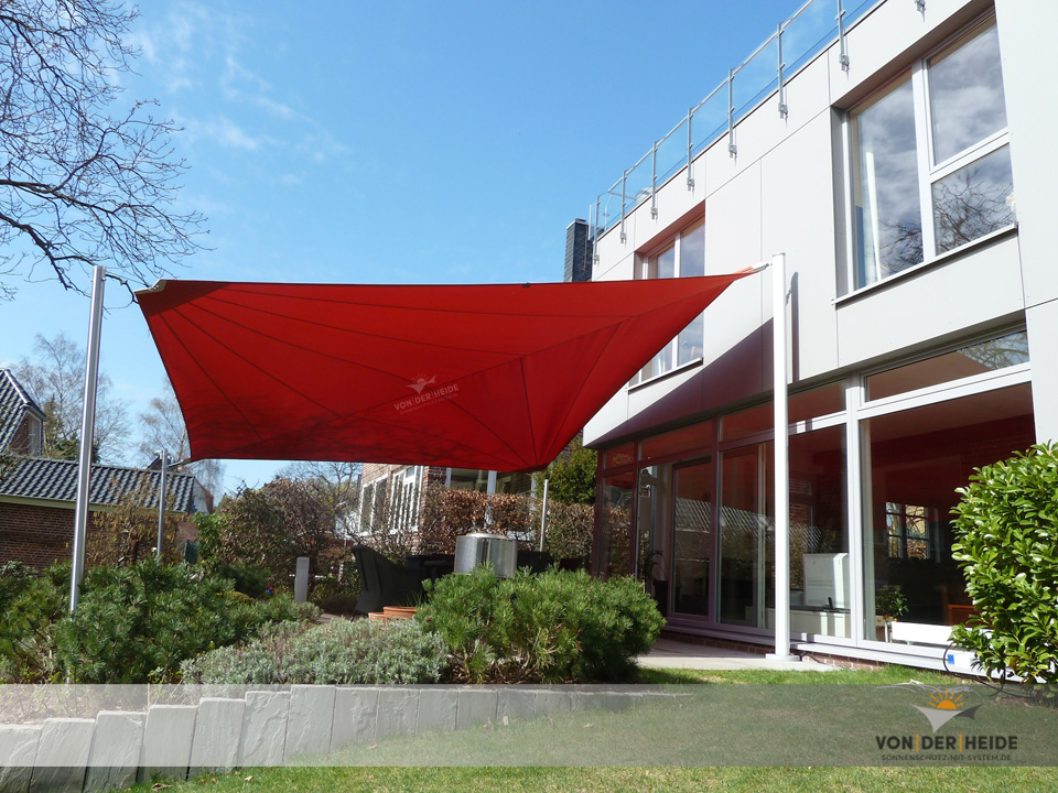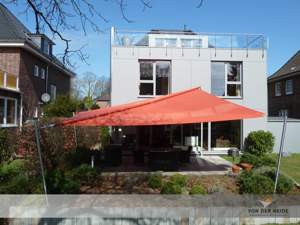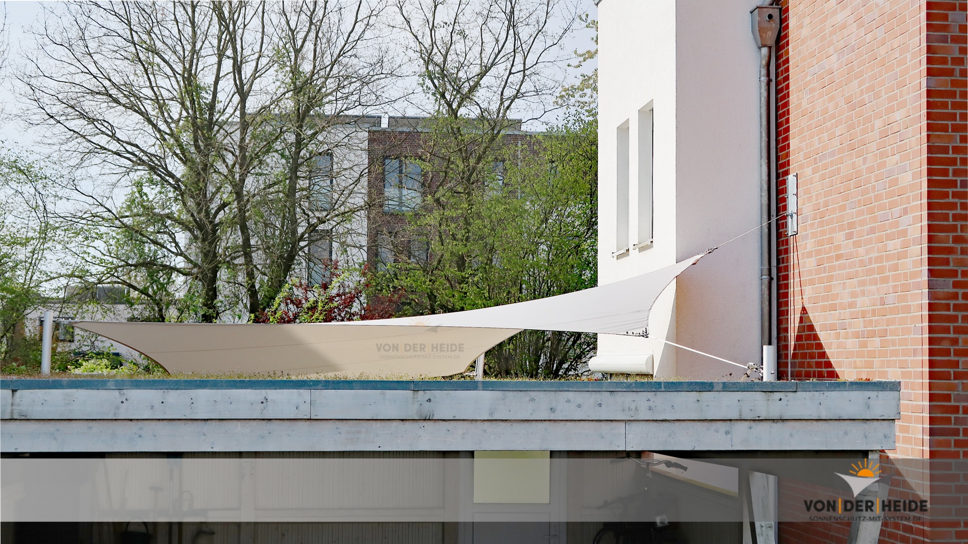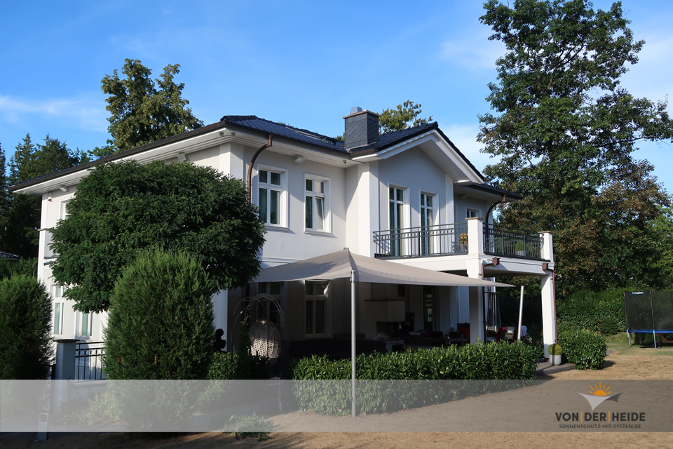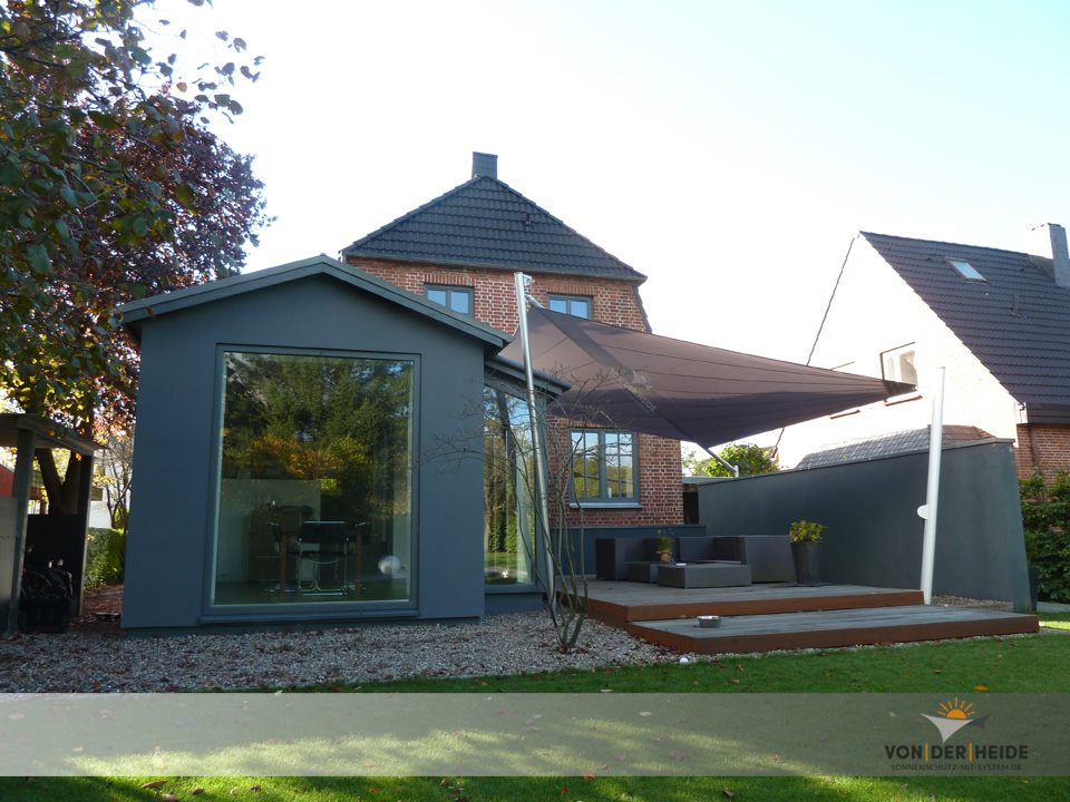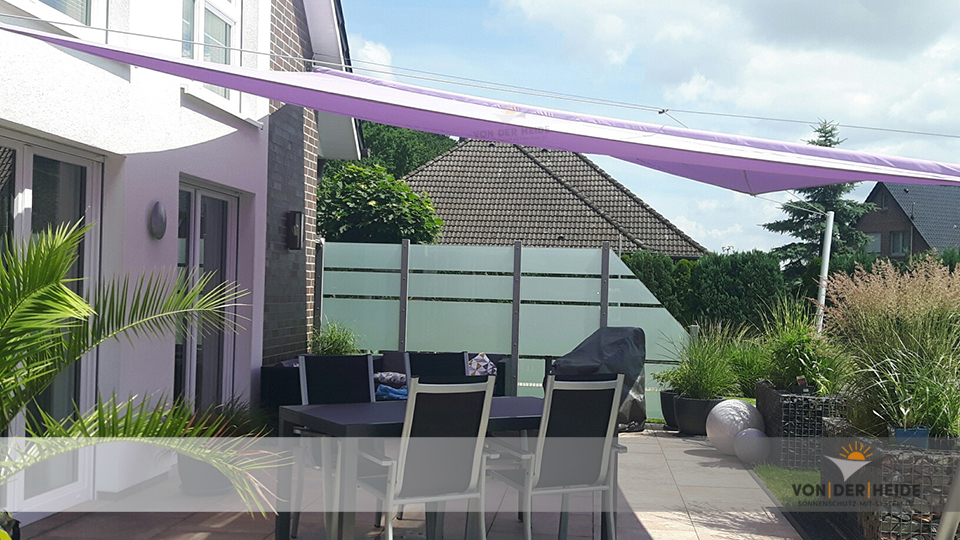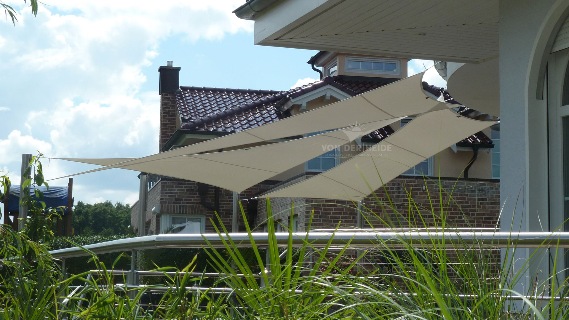 Mit richtig geplant und umgesetzten Sonnenschutzsystemen wie solchen Sonnensegeln genießen Sie Ihr Zuhause in Sonne und im Schatten