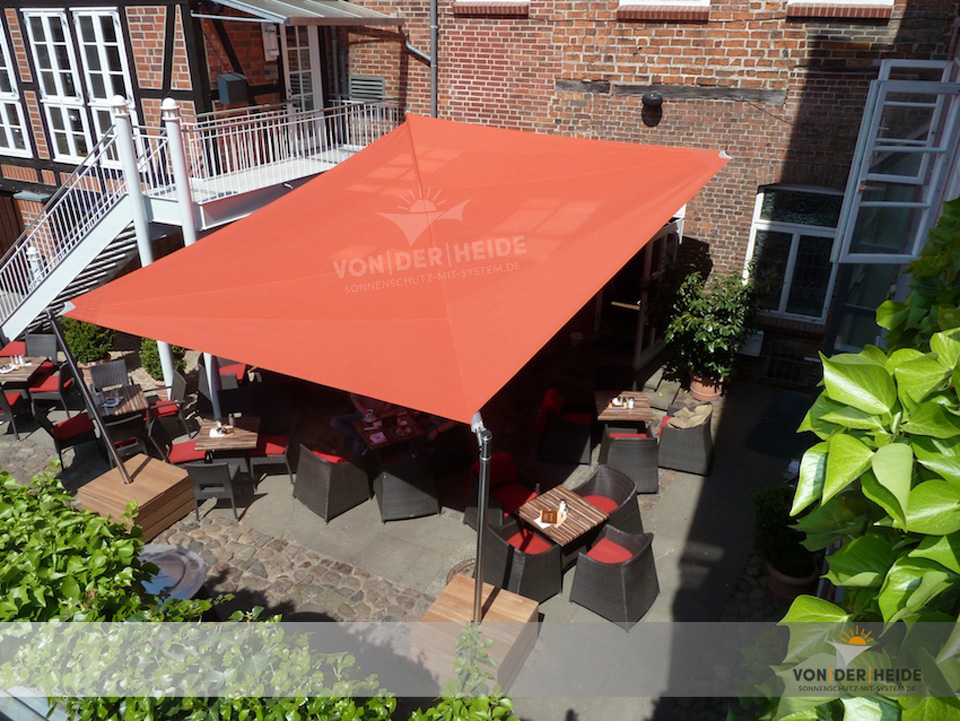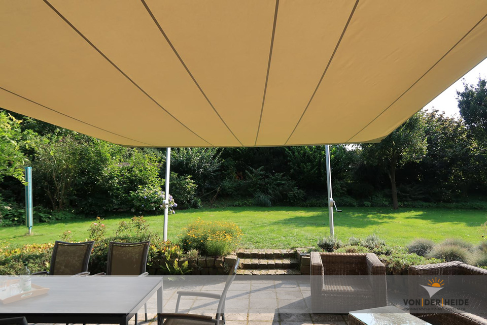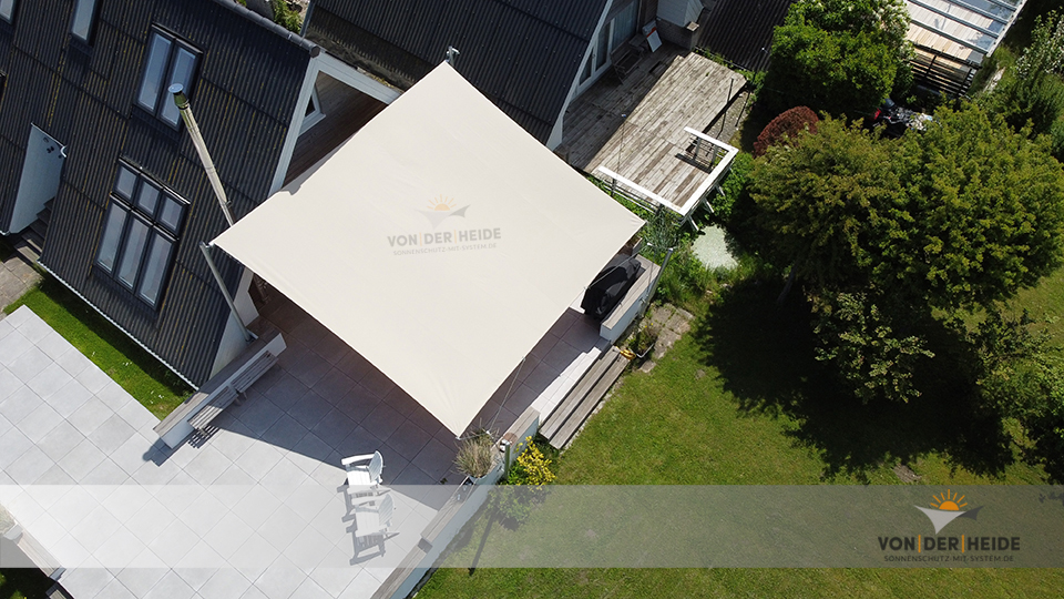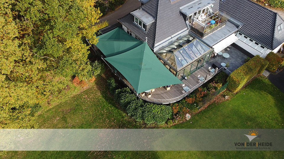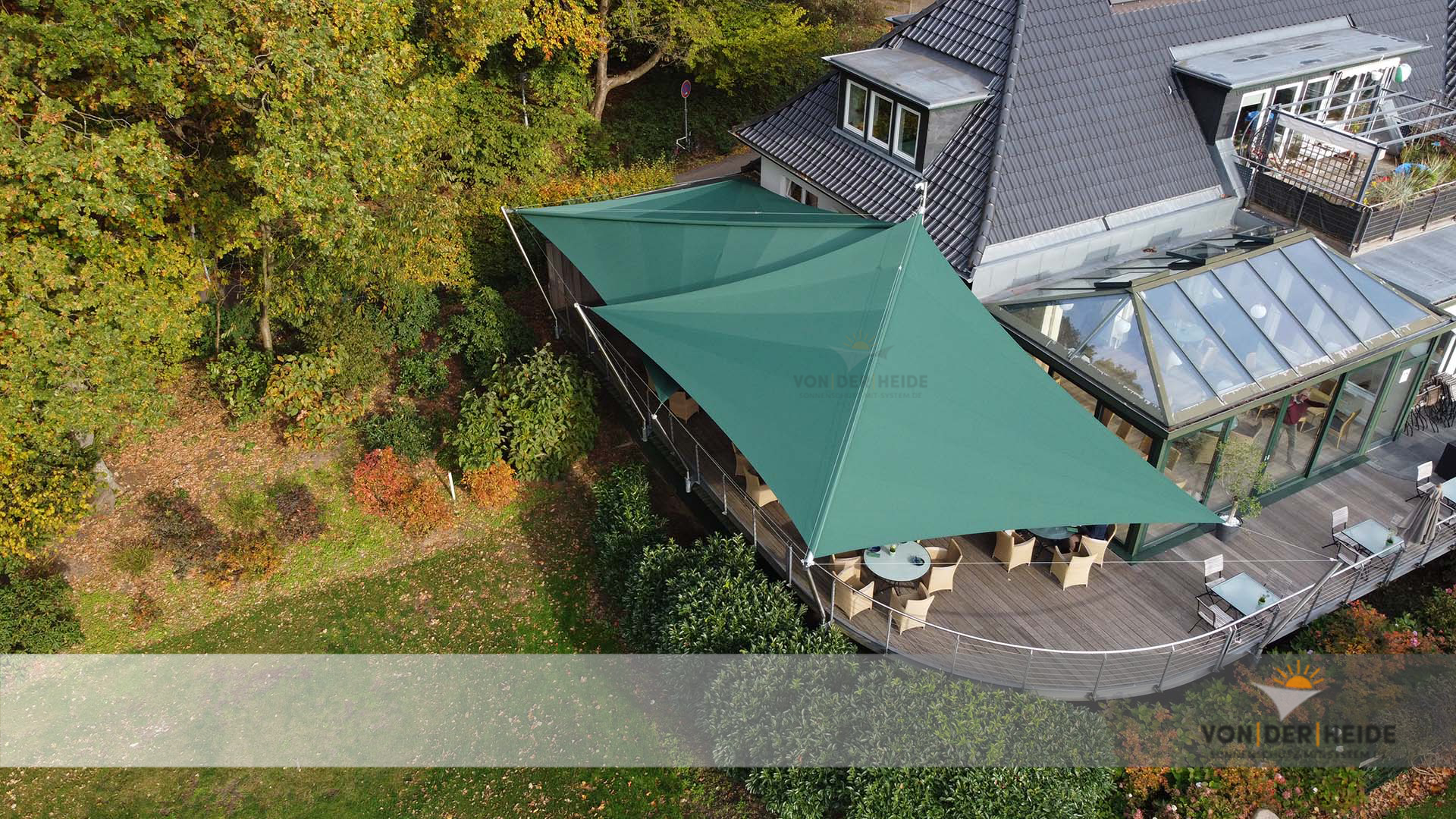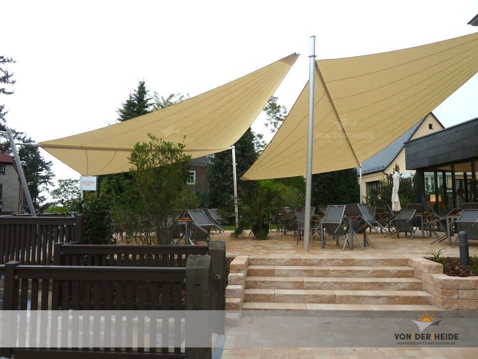 Mit unseren individuell geplanten Sonnensegel lassen sich auch große Terrassen abdecken.
