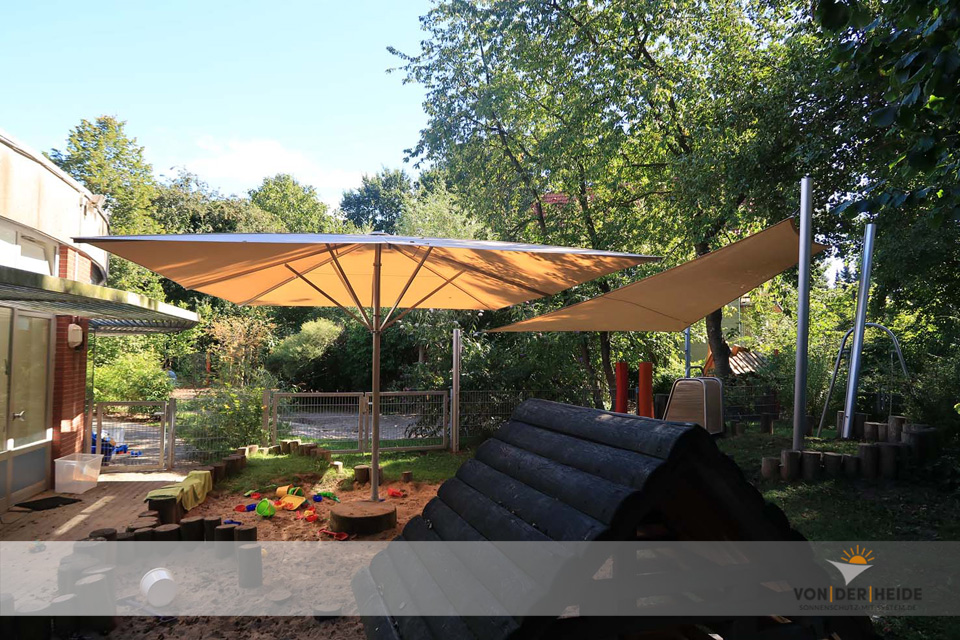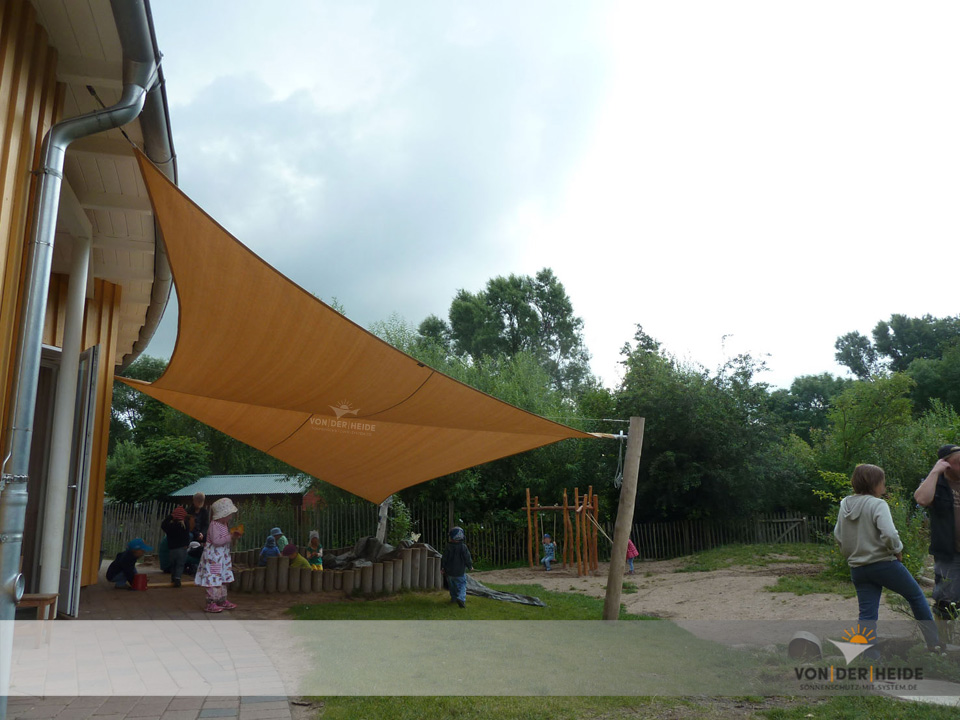 Ob über Sandkisten, Spielgeräten oder Sitzplätzen. Wir sorgen für Sonnenschutz Ihrer Kinder. Hier manuell aufrollbare Sonnensegel