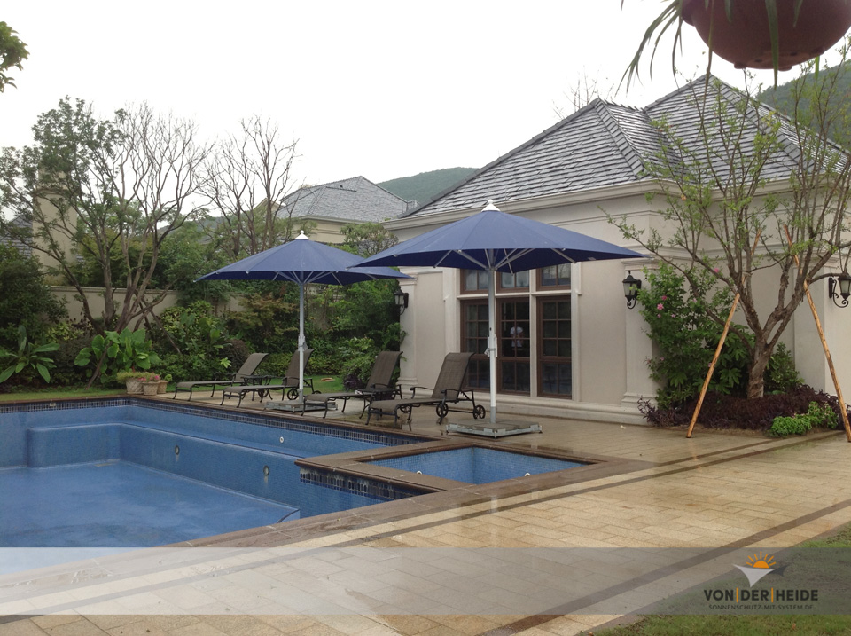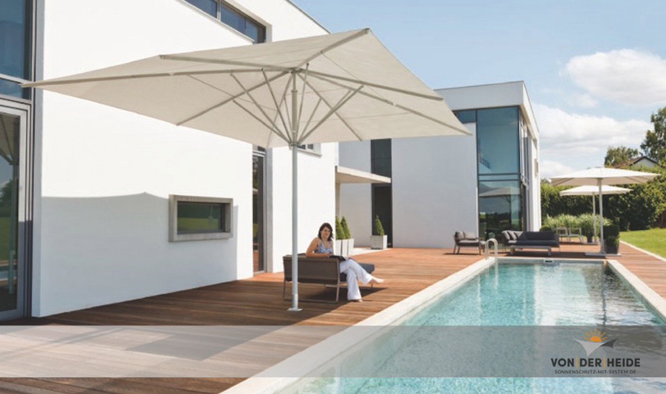Rechteckiger Sonnenschirm May-Filius an Swimming-Pool eines Privatobjektes