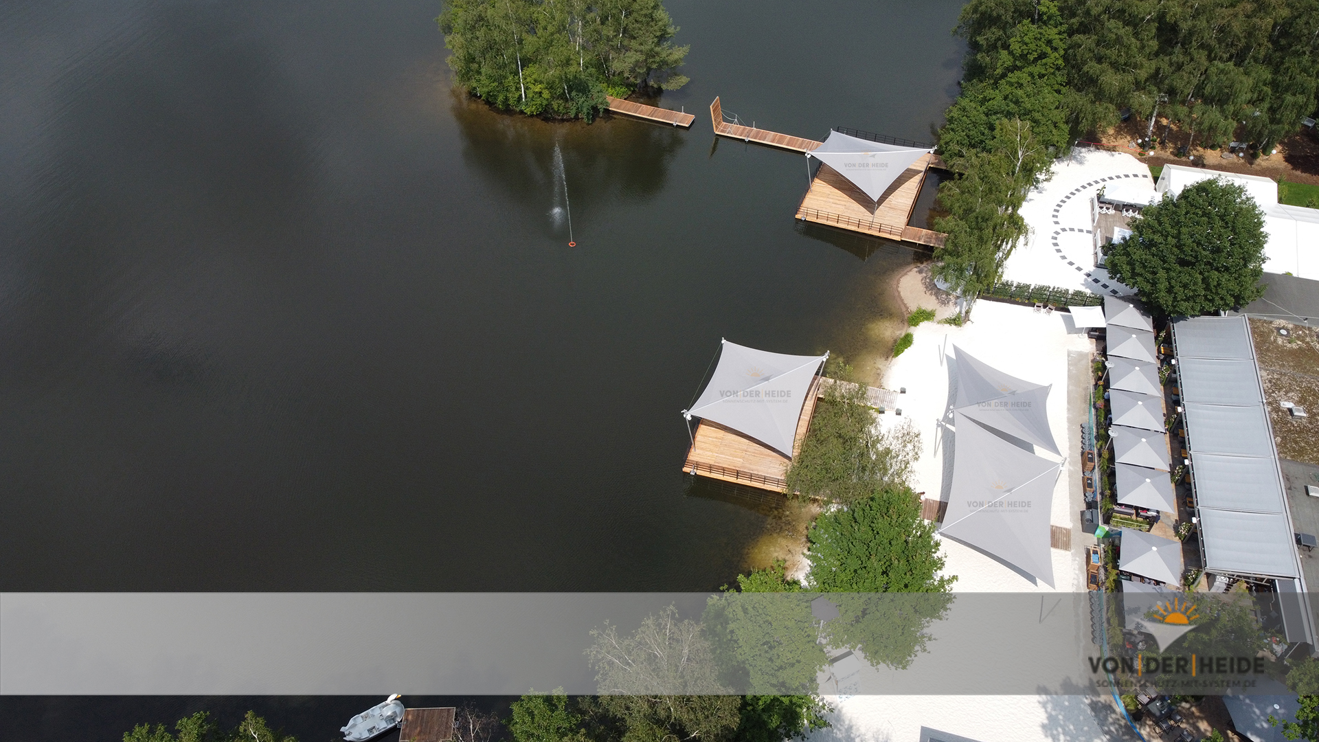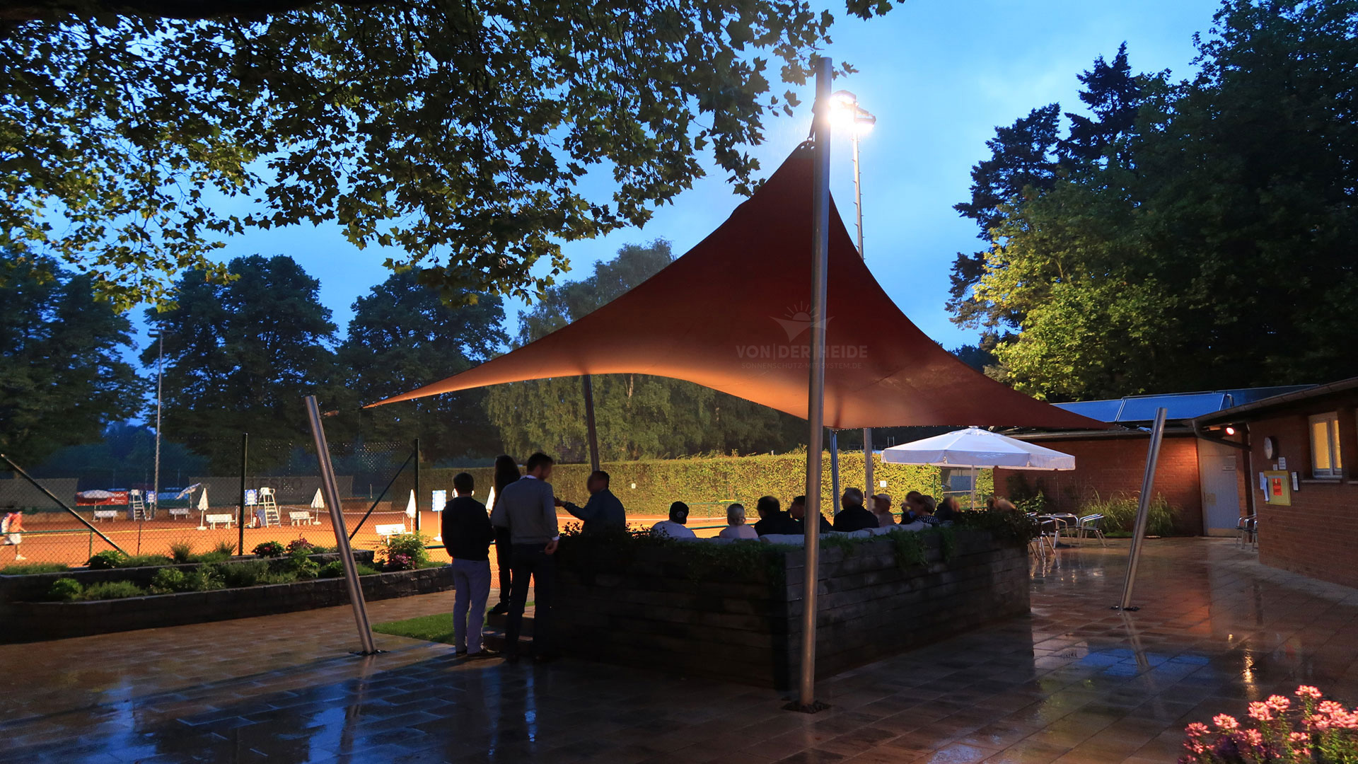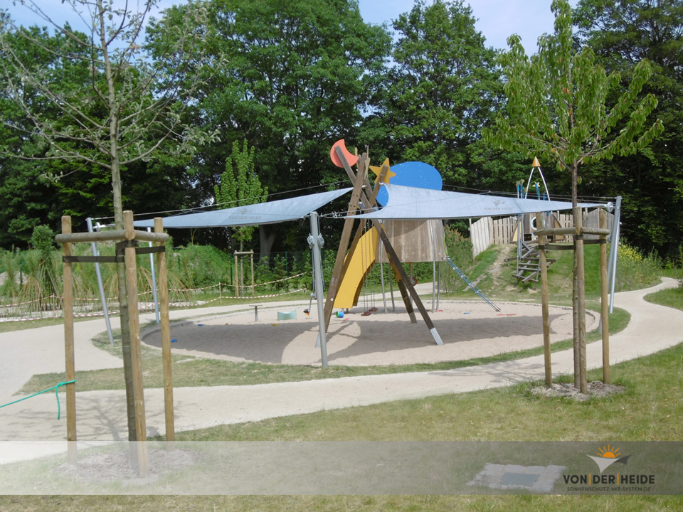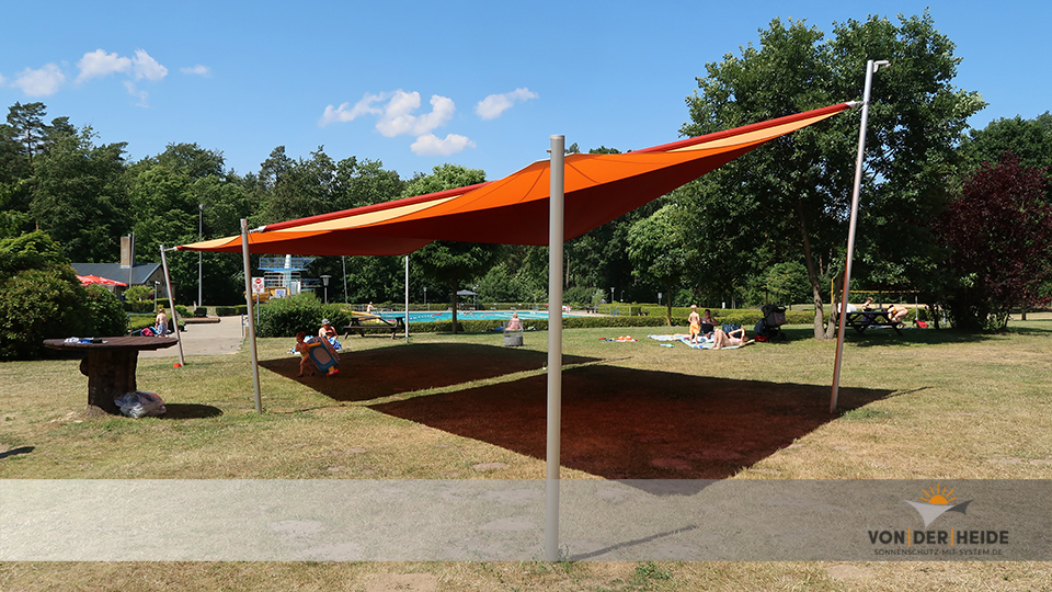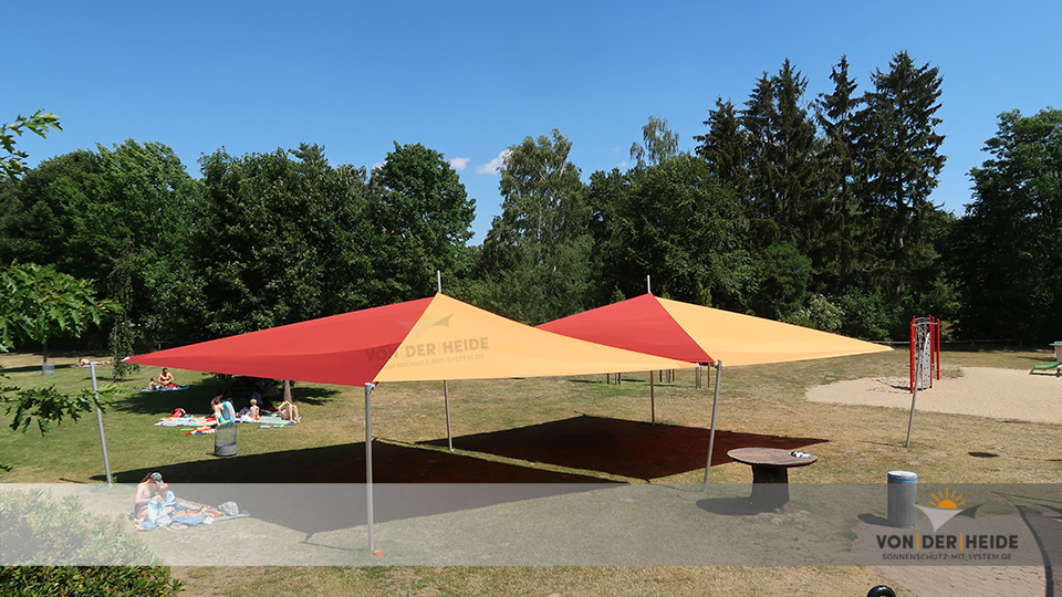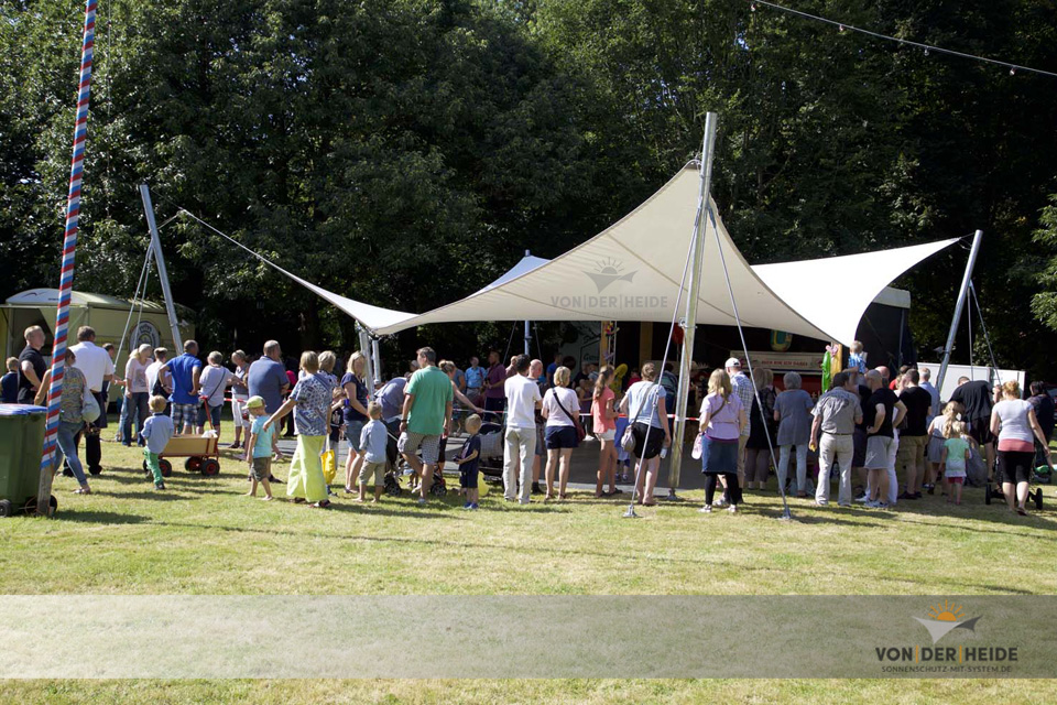 Großes Eventsegel als Sonnen- und Regenschutz im Hohenzollernpark Schenefeld