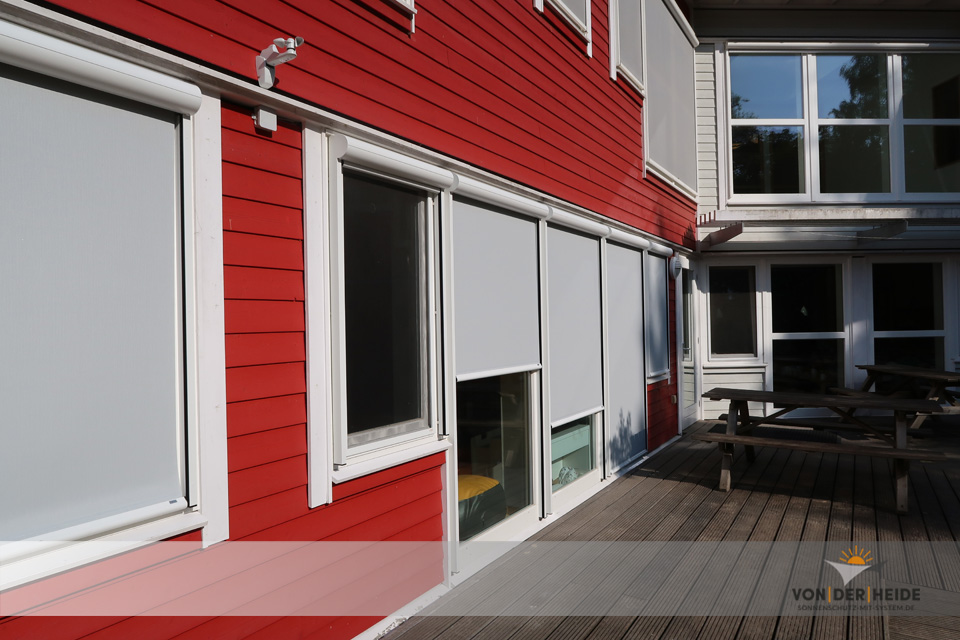 Fensterbeschattung einer Kita mit Roll-Screens.