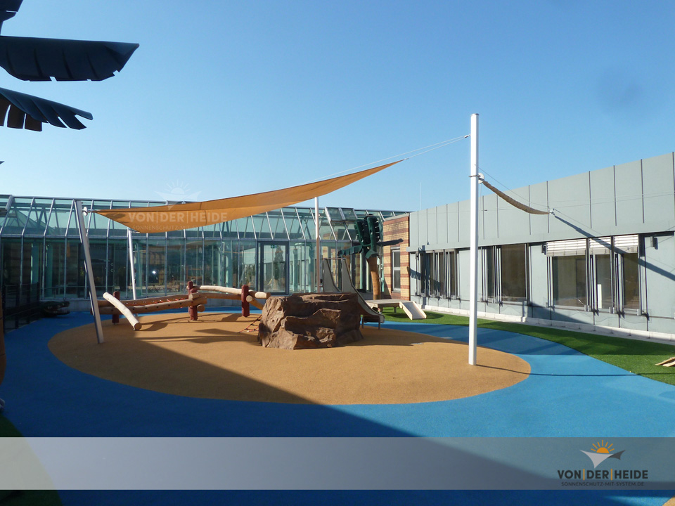 Sonnensegel in einer Kita über Spielgerät auf Dachterrasse