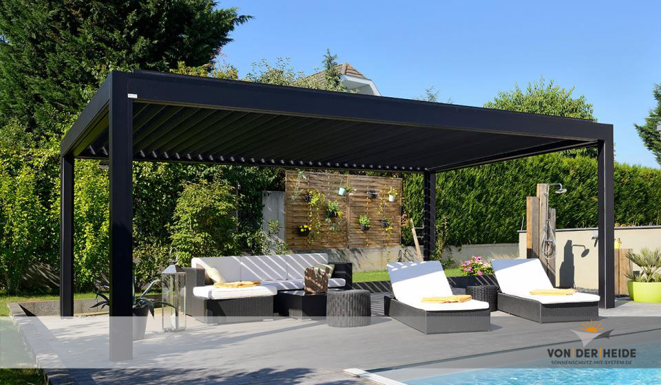 Sunrain Leiner-Falt-Pergola in Berlin. Seitenansicht