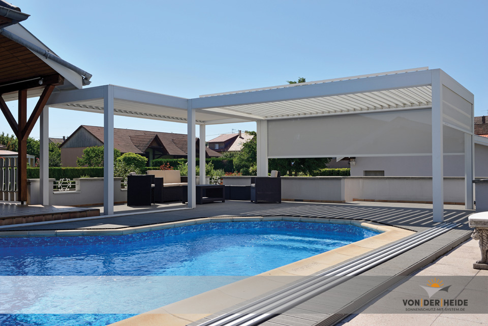 Egal aus welcher perspektive… die Pergolen mit den Raffsegeln sehen immer gut aus.