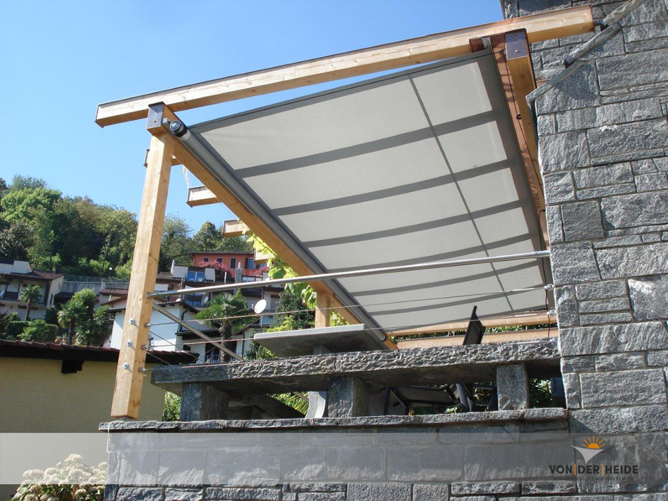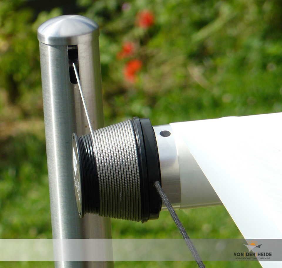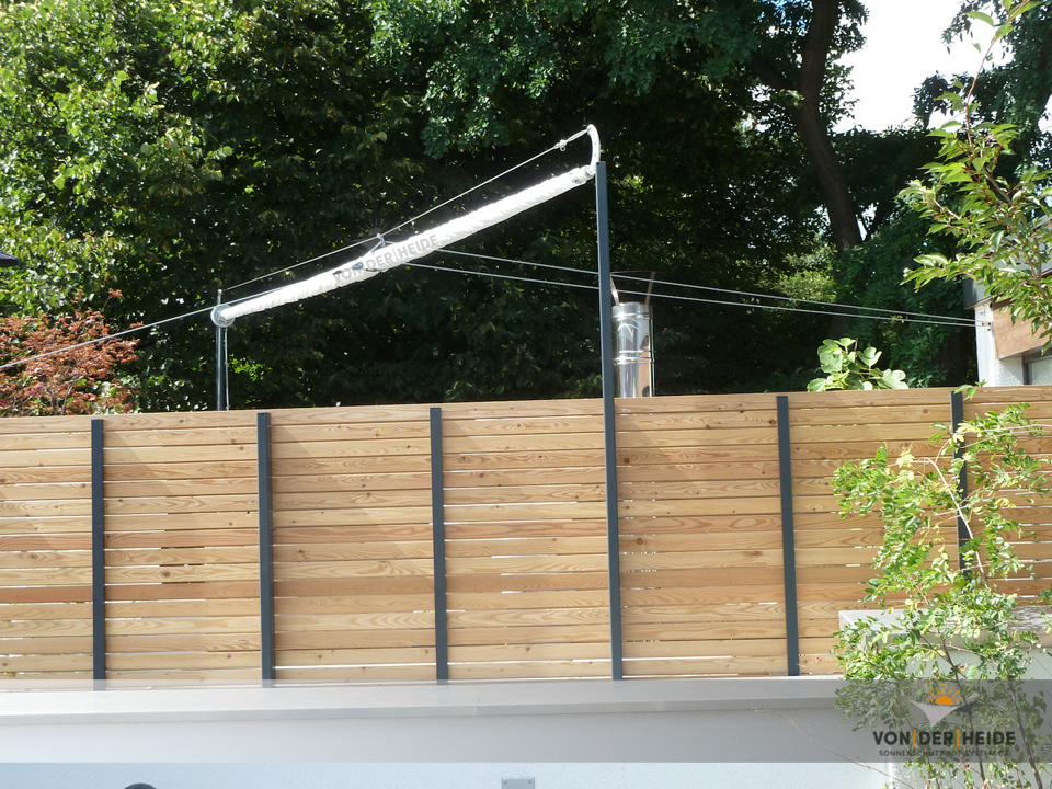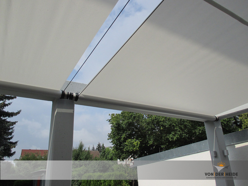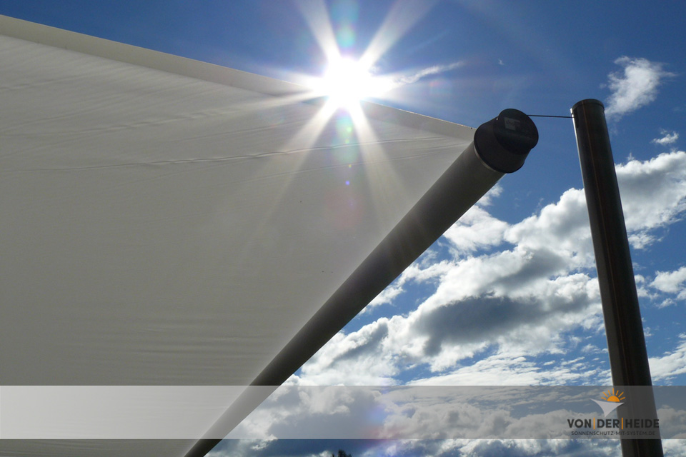 Die Sonnensegel werden bei Bedarf einfach ausgerollt. In der übrigen Zeit bleiben sie eingerollt.