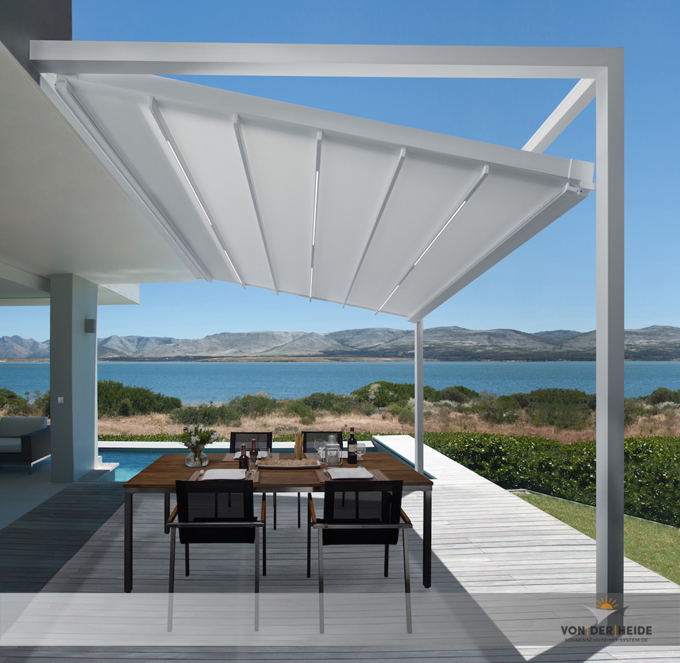 Schwebe- Pergola-Markise- Farbe weißaluminium