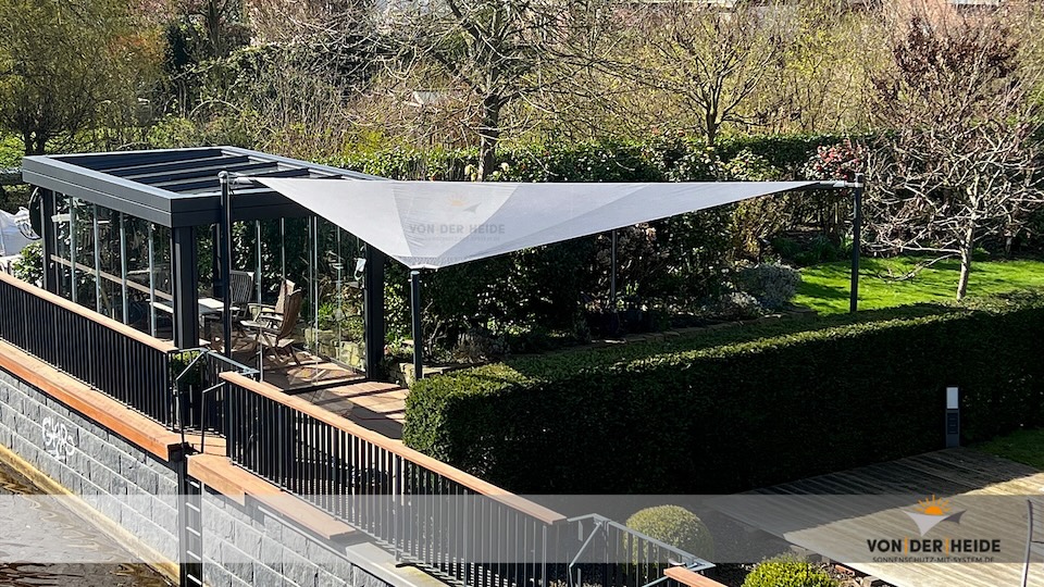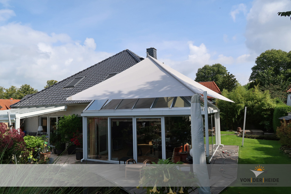 Sonnensegel auf Wintergärten schützen nicht nur vor Aufheizung sondern bieten auch ästhetische Architektur