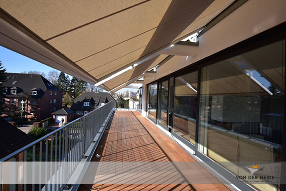 Beschattung einer Fensterfassade und von Balkonen/Dachterrassen mit VDH-Schwebemarkisen