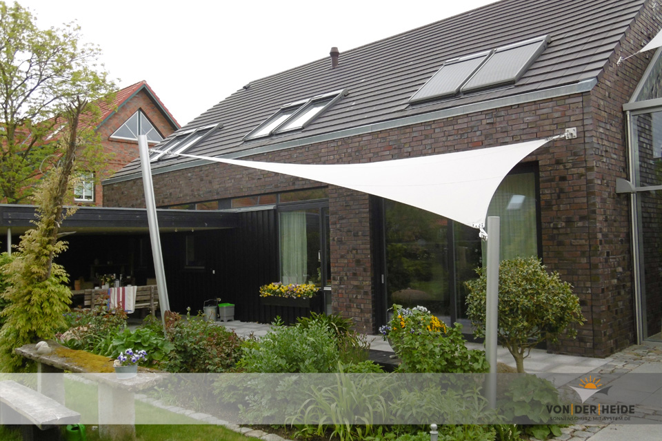 Sonnensegel-Anlagen für den ganzjährigen Einsatz bei Wind und Wetter. Textiler Mambranbau oder auch textile Architektur genannt. Dauerhafter Nutzen in Form architektonischer Highlights zur Beschattung sowie als Regen- und Schneeschutz. An oder auf Gebäuden montiert oder freistehend als Solitair. Eingesetzt in Gärten, als Vordach, als Carport oder sonst als Überdachung. Privat, gewerblich genutzt, in Kitas und für die Gastronomie. Für Ganzjahressegel sind in der Regel Baugenehmigungen erforderlich. Die Vorschriften können in Hamburg, Schleswig-Holstein, Mecklenburg-Vorpommern, Niedersachsen und Bremen und von Kommune zu Kommune unterschiedlich sein. Ganzjahressegel sind die einzigen Sonnen- und Wetterschutzsegel, die auch bei Sturm, Schnee und Eis genutzt werden können.…